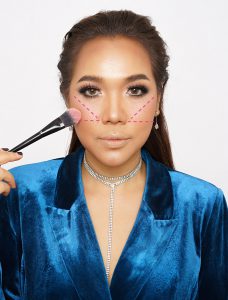 8 ใช้แปรงปัดไฮไลท์ตามตำแหน่งดังภาพเพื่อให้ใบหน้าดูโดดเด่นมากขึ้น