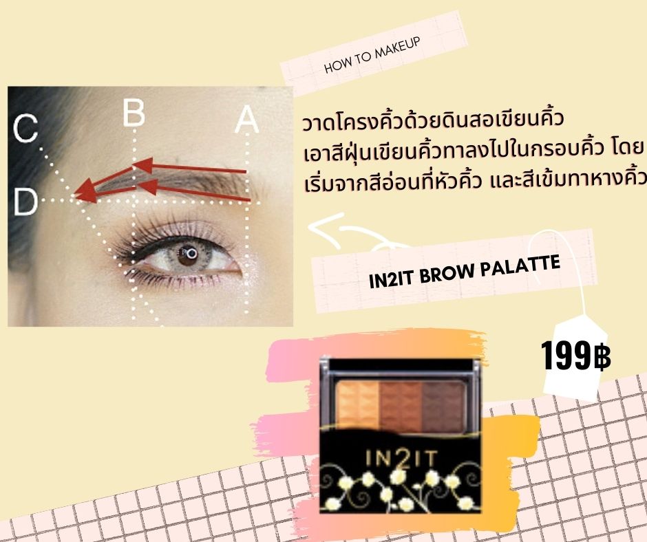 2 เอาสีฝุ่นเขียนคิ้วทาลงไปในกรอบคิ้ว โดยเริ่มจากสีอ่อนที่หัวคิ้ว และสีเข้มทาหางคิ้ว วันนี้ขอฟุ๊งๆพอค่า