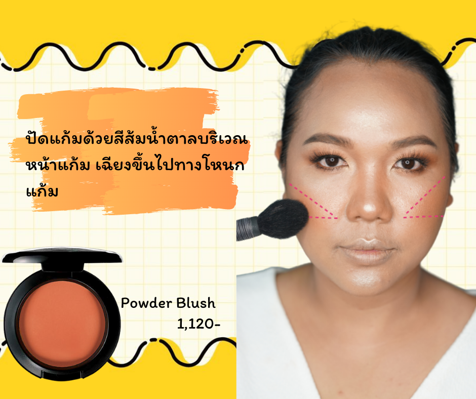 10 ปัดแก้มด้วยสีส้มน้ำตาลบริเวณหน้าแก้ม เฉียงขึ้นไปทางโหนกแก้ม